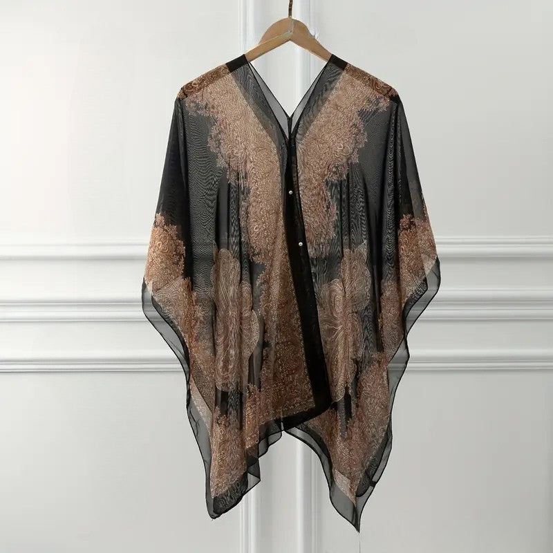 Indispensable du dressing, ce châle noir vous accompagne avec élégance en toute occasion. Son allure sobre et sophistiquée en fait un accessoire facile à porter et à styliser.